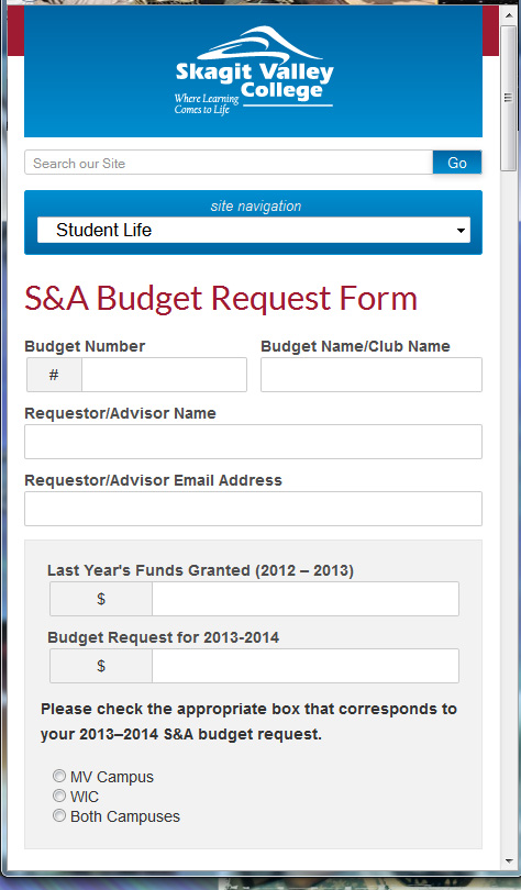 learn moreThe Student Life services at Skagit Valley college offer clubs to the students. This service and activities organization requires certain paperwork for the club and organization to stay active and receive funds. The S&A Budget Request Form is a major source of paperwork for these clubs. I have been tasked to create an online form to replace the paper trail for this subject. The forms are very complex with a lot of required information and many dynamically generated fields. This lead to some very complicated problems to solve using my test driven development techniques.