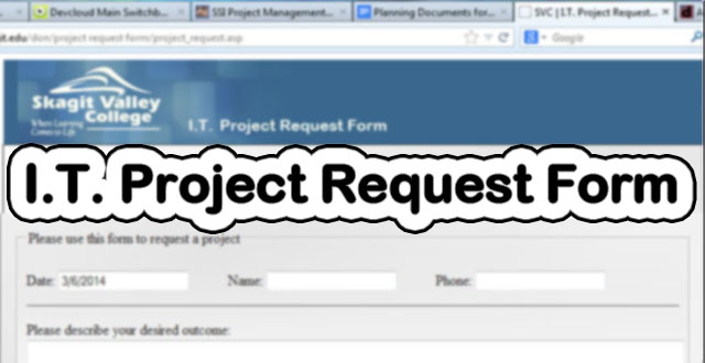 learn moreThe head of the I.T. Department at Skagit Valley College asked me to convert the paper form that was used for submitting an I.T. Project Request. I used my 3DW DevCloud Tools to track and complete this project.